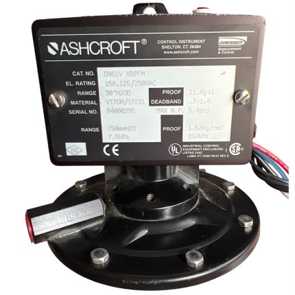 SWITCH DE PRESIÓN DIFERENCIAL, ALIMENTACIÓN 125 – 250 VAC 15A, RANGO DE 30 IN H2O, DOBLE BANDA MUERTA DE 0.7 – 1.4 MAX W.P. DE 5.4 PSI, INTERNOS DE VITON, BRAKES DE MONTAJE PARA PARED, APROBACIÓN FM, CONEXIÓN A PROCESO DE 1/4 NPT