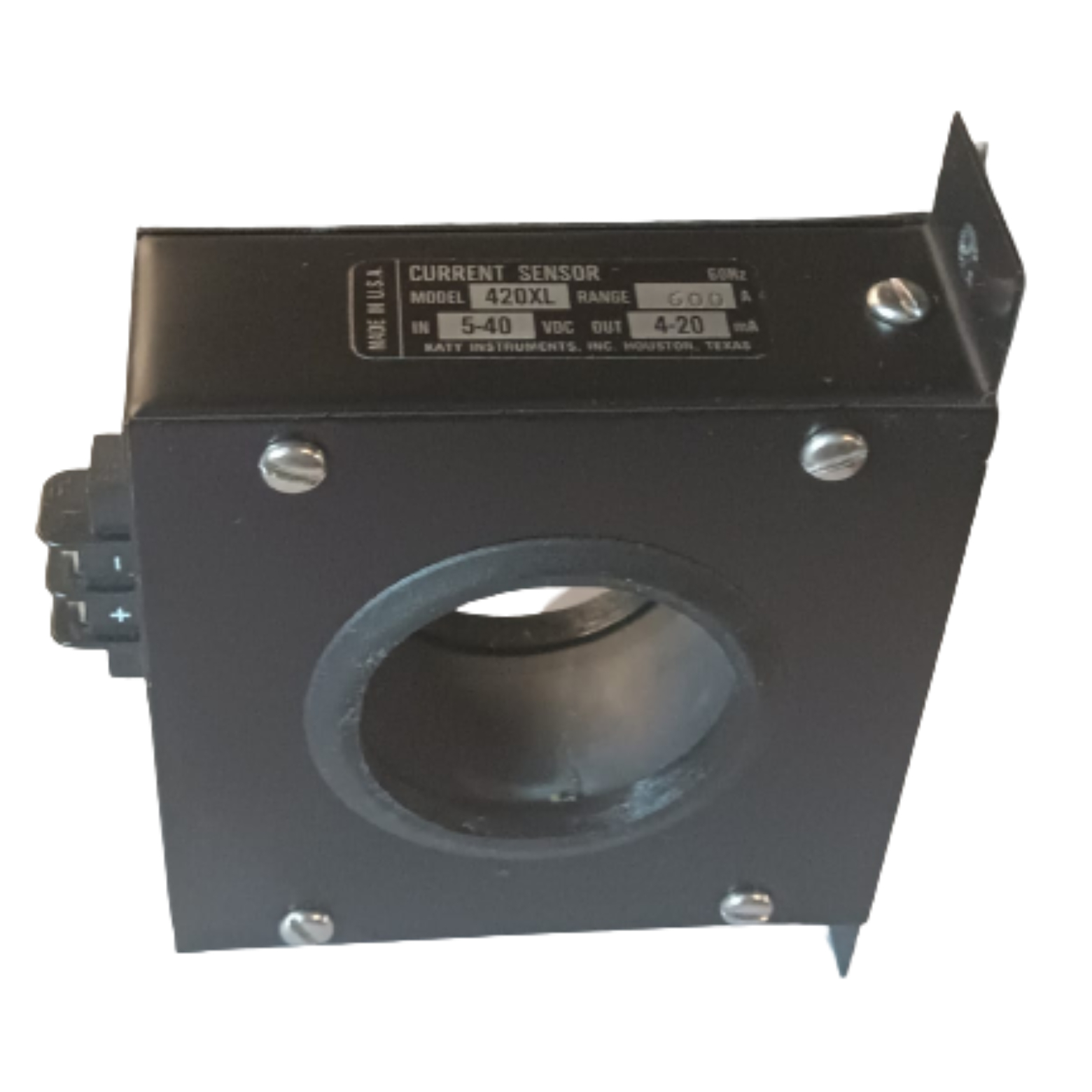 TRANSDUCTOR DE CORRIENTE TIPO DONA ALIMENTACIÓN 5-40VDC RANGO 600A SALIDA 2-20mA Modelo: 420XL-600 Marca: RILEY CORPORATION SALES Estado: Nuevo Ubicación: 18B